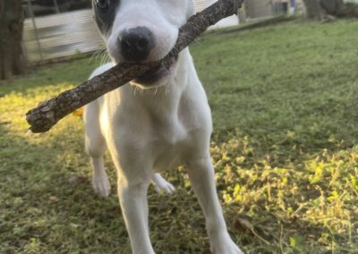 Alba is a 12 week old (DOB 7-8-21) female spayed grey and white Pitbull puppy that came to Northwood Animal Hospital Sept 8. She was critically ill with serious hookworm anemia. Her owner relinquished her to Northwood so she could receive the care she needed. Just as blood transfusion was commencing, Alba’s heart stopped. CPR was instituted immediately and her blood transfusion was given in bolus. Remarkably, we got her back! Alba recovered well, and is now a happy, healthy puppy. She is proceeding through her puppy vaccines, has been spayed and microchipped. And of course we took care of the hookworms that made her so sick in the first place. She just needs a home now.