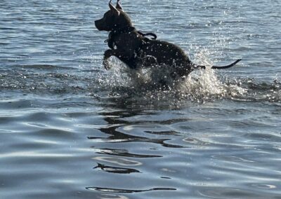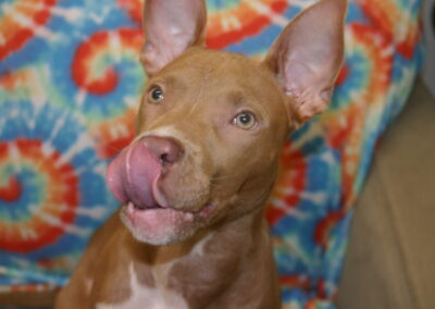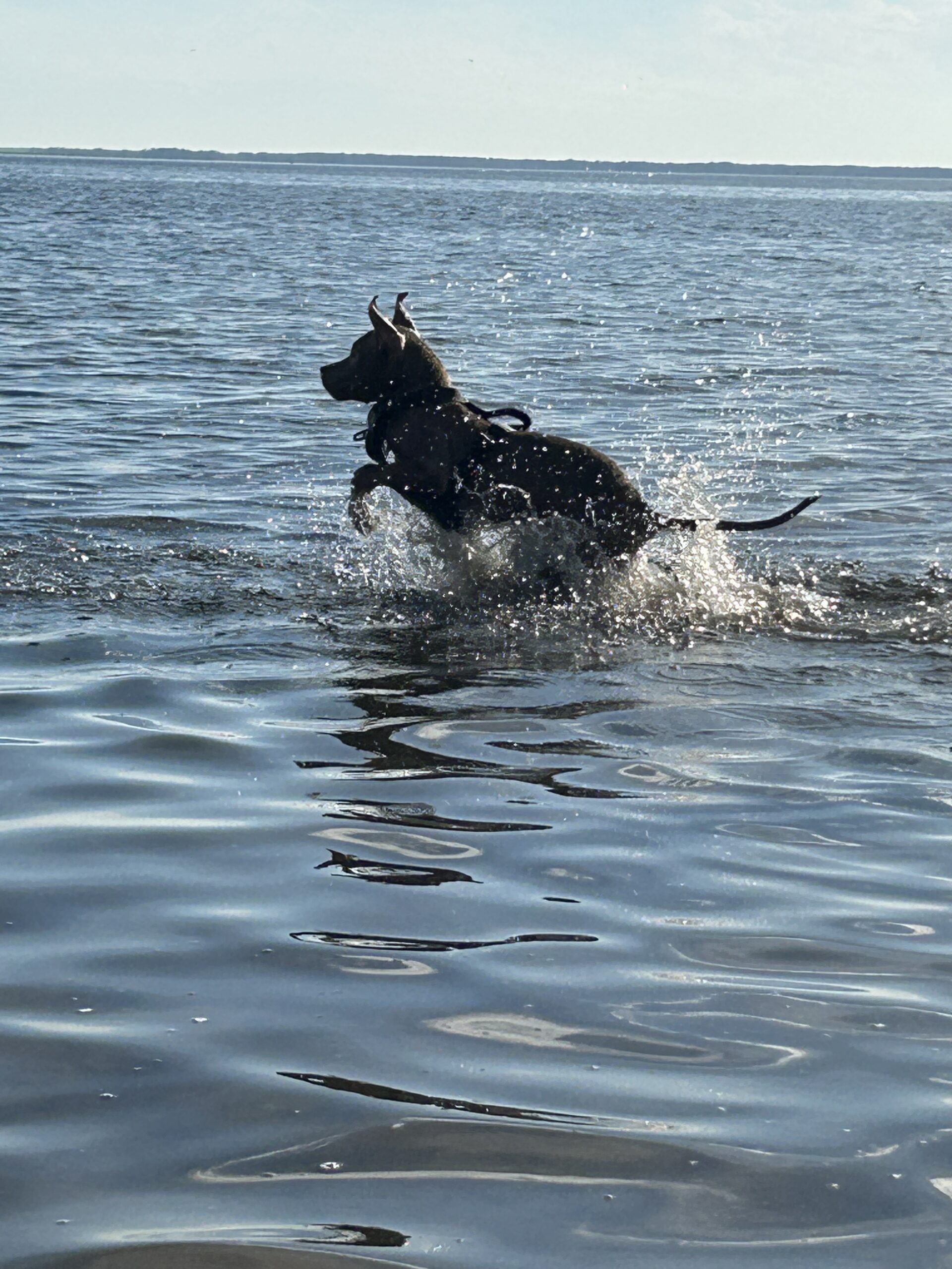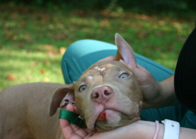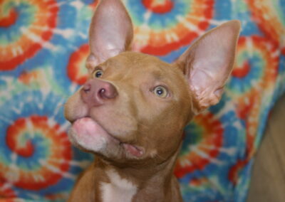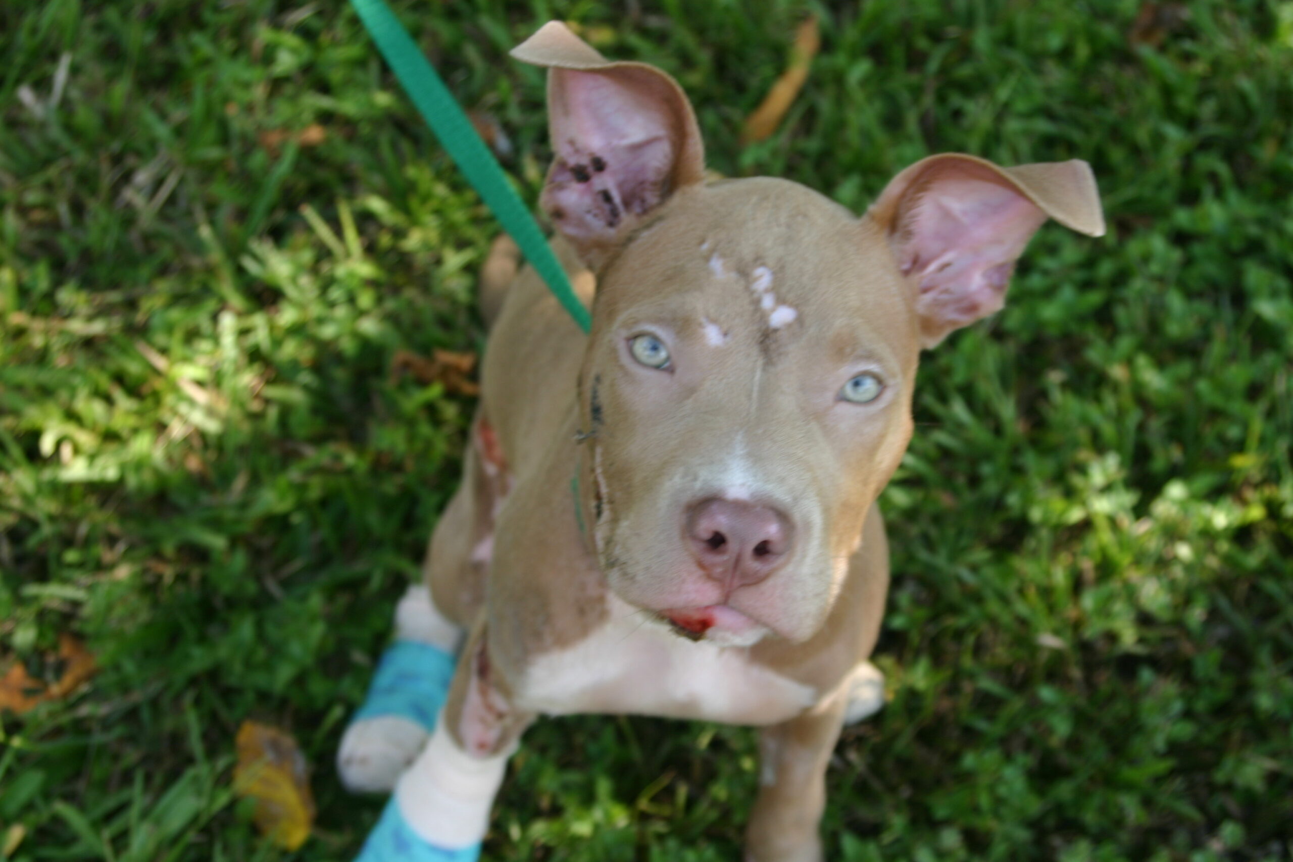 On August 31, 2025, a 3 month old (DOB 5-31-25) chocolate and white female pitbull was brought into Northwood on Emergency.