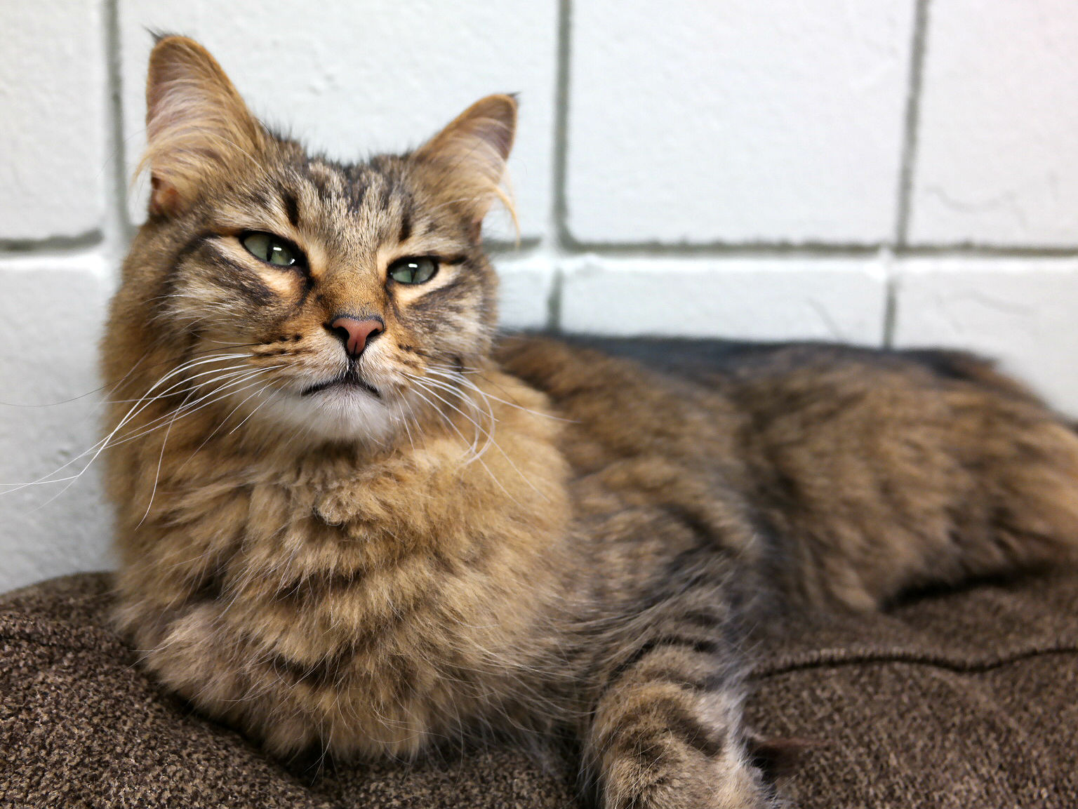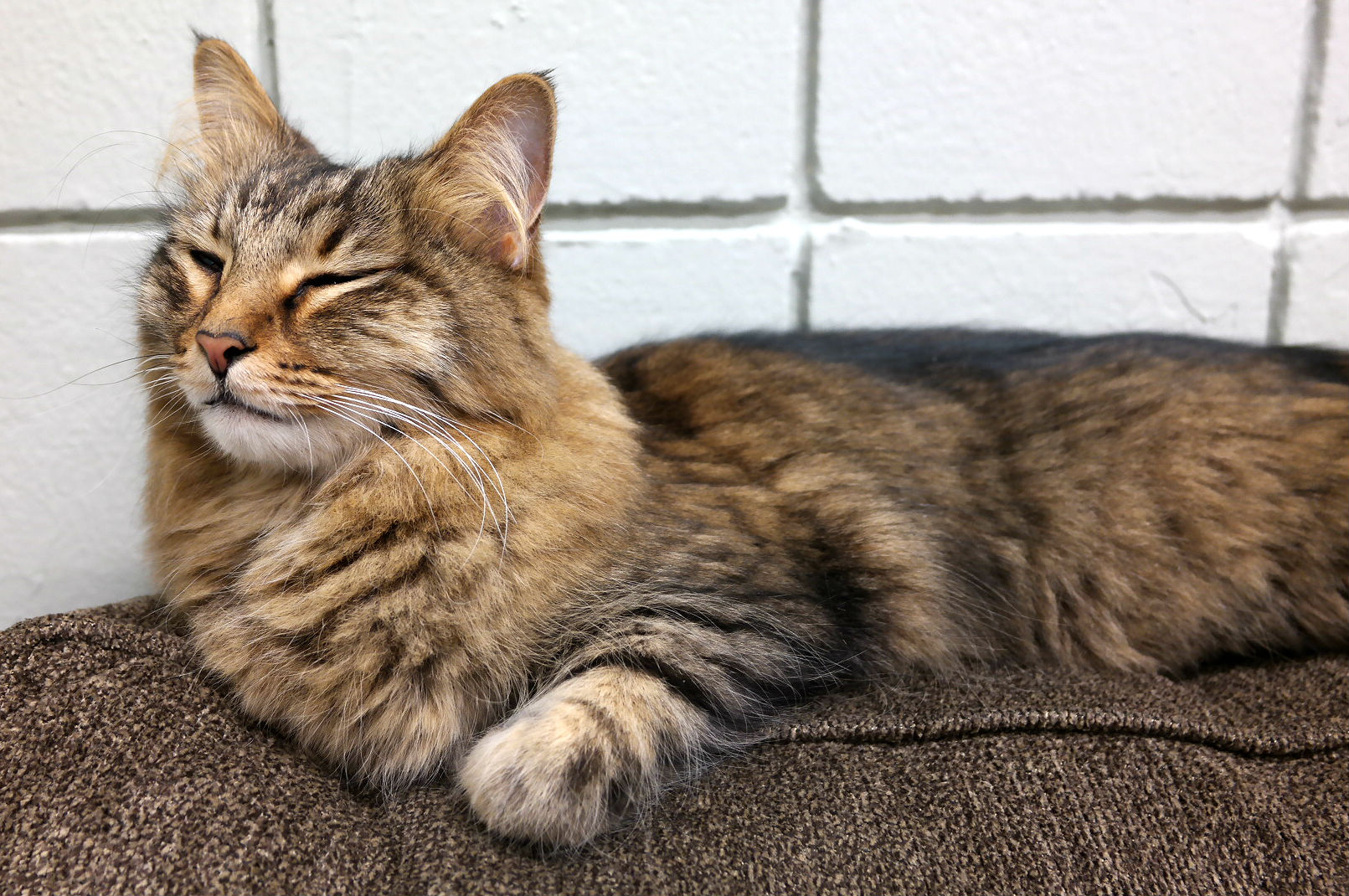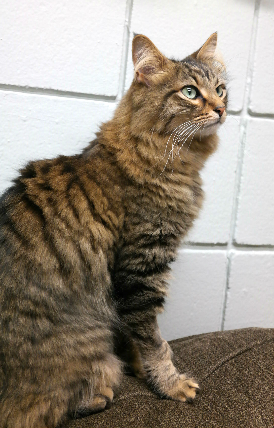 Freddie is a beautiful DMH 6 year old male neutered brown tabby cat, declawed in the front feet. Freddie joined CARE in early 2017 because he had eaten a foreign body and required an emergency abdominal exploratory surgery to remove the foreign body, found in his jejunum (part of small intestines). Freddie did well and started eating soon after surgery. This was the second time in Freddie’s life that he ate something he shouldn’t have and required surgery to remove it. His forever family will have to make sure to “Freddie-proof” their home so he cannot swallow hair ties, bracelets, and other problem objects.