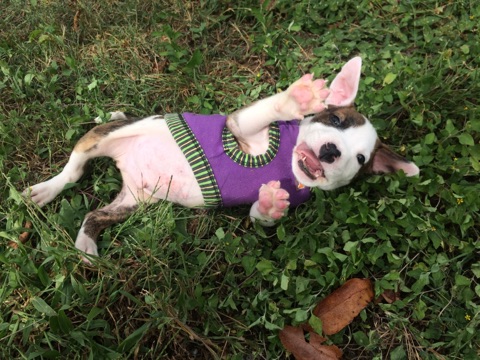 Isn’t Hank adorable!  We’re so happy to see Hank rolling around and acting like a puppy – he wasn’t always this playful.  Hank joined CARE on October 2, 2016 with a terrible abscess on his back and superficial hot spots on his neck and shoulders.  Most of his skin was affected by an infection.  Thankfully, Hank responded beautifully to treatment and is now working to regrow his coat.  Hank is now happy, healthy, neutered, microchipped, progressing through his puppy vaccines, and ready to go home with you! Like all puppies, Hank will need continued training after adoption (house-training, basic manners, etc).  He comes with a free series of puppy classes with The Puppy Ladies to help ensure his long-term success after adoption.