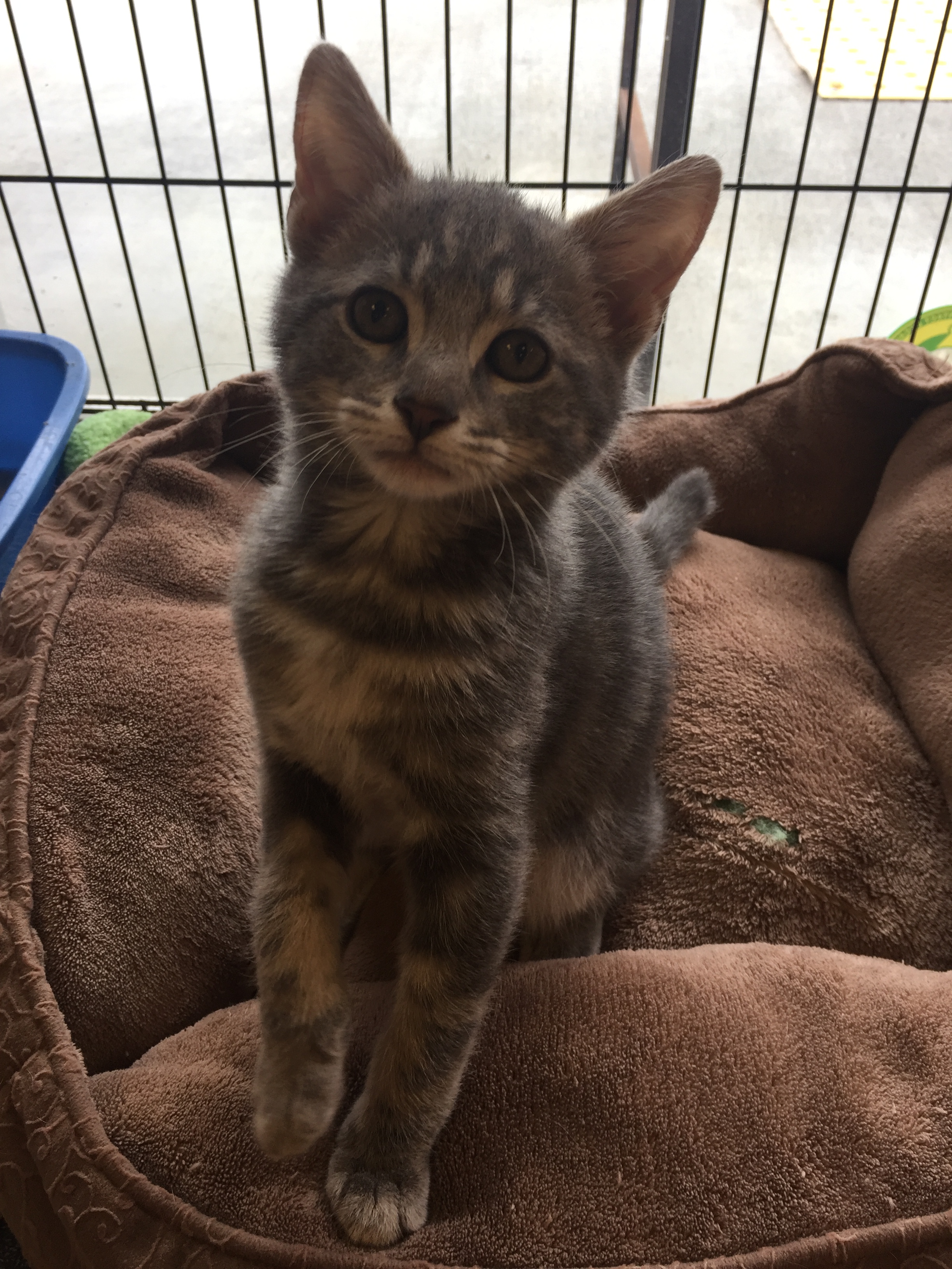 Hello Harvey! We met this little kitten in early January 2017 when he was just a few weeks old. He was found as a stray and quickly joined CARE for treatment of his eye infection, tail wound, and flea infestation. Thankfully, he responded quickly to medical therapy and is now happy, healthy, neutered, microchipped, and progressing through his kitten vaccines! He would love to meet you!