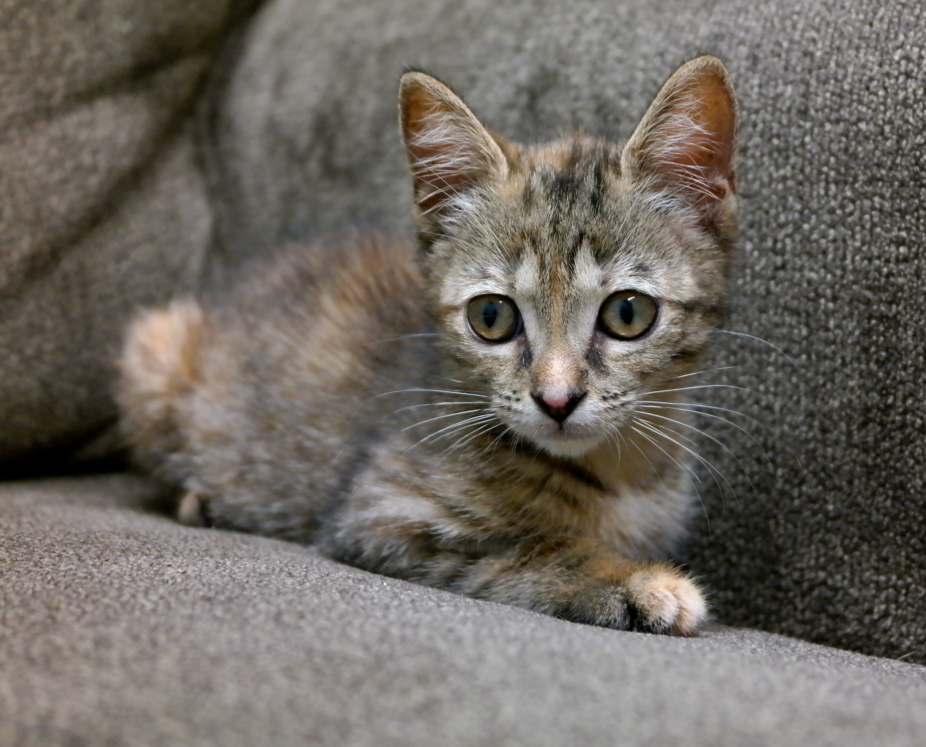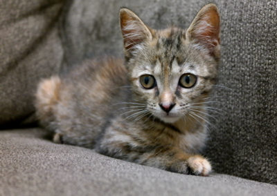 This beautiful girl found CARE in late May of 2017.  She was brought in by a good samaratin who picked her up near Burger King on Magnolia.  She was suffering from a severe upper respiratory infection – it was so bad that both her eyes were crusted shut!  She was treated for her URI and ear mites and is much better now!  You can’t even tell that she was every sick or a stray!  Ronan is spayed, microchipped, up to date on vaccines, and ready for her forever home!