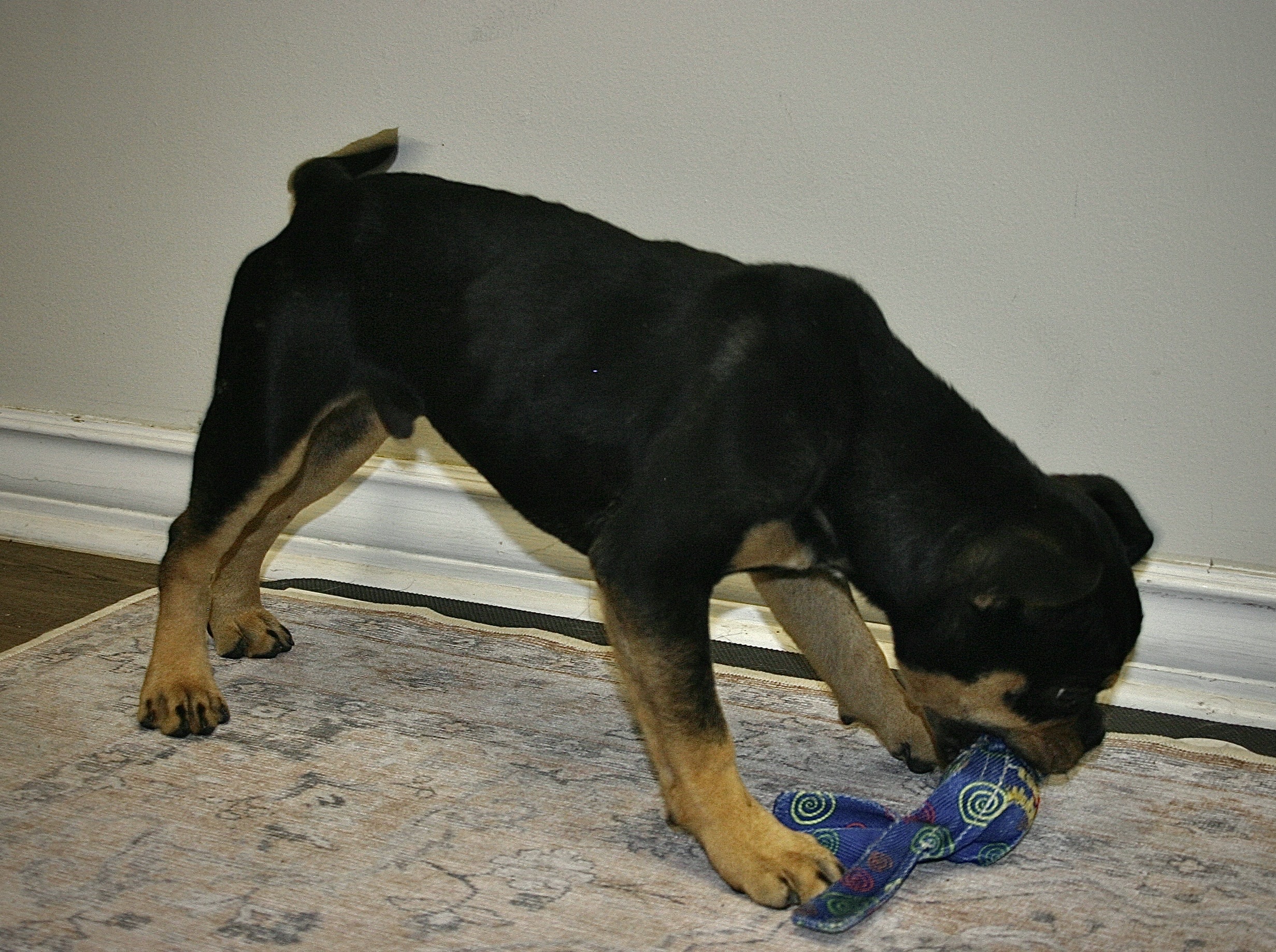 Scoop’s rectum has stayed in place after removal of the sutures (purse string) to hold it in place while everything was healing. Scoop has received his puppy vaccines, has been neutered and microchipped.