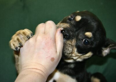 On Feb 2, 2026 a black and tan male Frenchie mix puppy was brought to Northwood Animal Hospital on emergency. He had been found as a stray wondering in Lanier County GA. He had a severe rectal prolapse, with a large section of the distal rectum protruding from his anus.